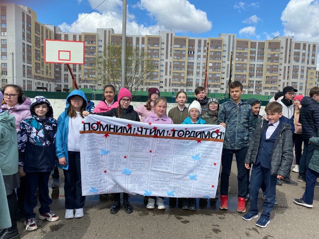 В преддверии Дня Великой Победы Совет старшеклассников совместно с пионерами провели акцию "Полотно памяти".